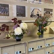 季節ごとに二中に咲いているお花を生けたりアレンジしたりして二中に来るお客様をお迎えしています。
