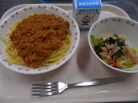 ・牛乳 ・スパゲッティミートビーンズソース ・小松菜サラダ ●743kcal・タンパク質36.4g |