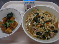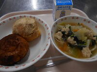 ・牛乳 ・二色揚げパン ・肉団子のスープ ●700kcal・タンパク質33.4g |