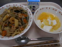 ・牛乳 ・あんかけやきそば ・杏仁豆腐 ●753kcal・タンパク質33.4g |