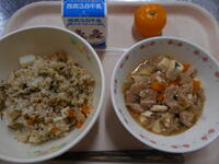 牛乳 麦ごはん のりの佃煮 豚肉とうずらの煮物 キャベツのおかか和え |