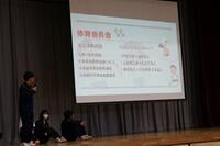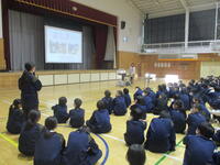 助産師・思春期保健相談士の方を講師としてお招きし、本校体育館で1学年を対象とした「性に関する講演会」を行いました。1年生の性についての悩みを講師の方の経験を通してお話ししてくださいました。保護者の方も20名参加してくださり、講演会の後は、講師の方と保護者の方で懇談会を行いました。