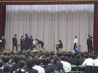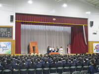 体育館で三年生を送る会(三送会)が行われました。若葉学級・1学年・2学年が映像・ダンス・劇・アート紹介など、工夫を凝らした出し物で3年生に感謝の気持ちを伝えました。3年生からは、1・2年生に向けた歌のプレゼントがありました。とても温かな会となりました。