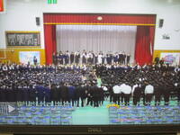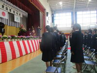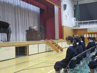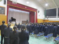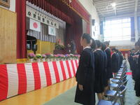 本日、卒業式の予行が行われました。3年生にとっては、15日(金)の本番が義務教育の集大成となります。今日の予行も本番さながらに皆真剣な面持ちで臨んでいました。卒業式当日は、春らしい陽気となり、良い式が迎えられそうです。